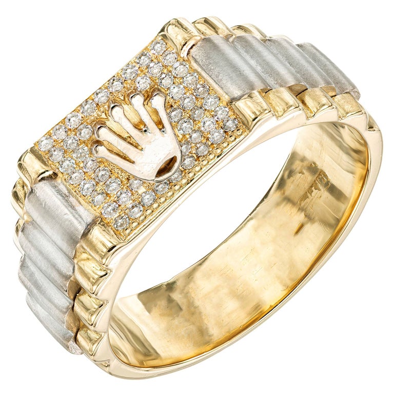 35 Carat Diamond Yellow White Gold Rolex Style Mens Ring For Sale At 1stdibs
